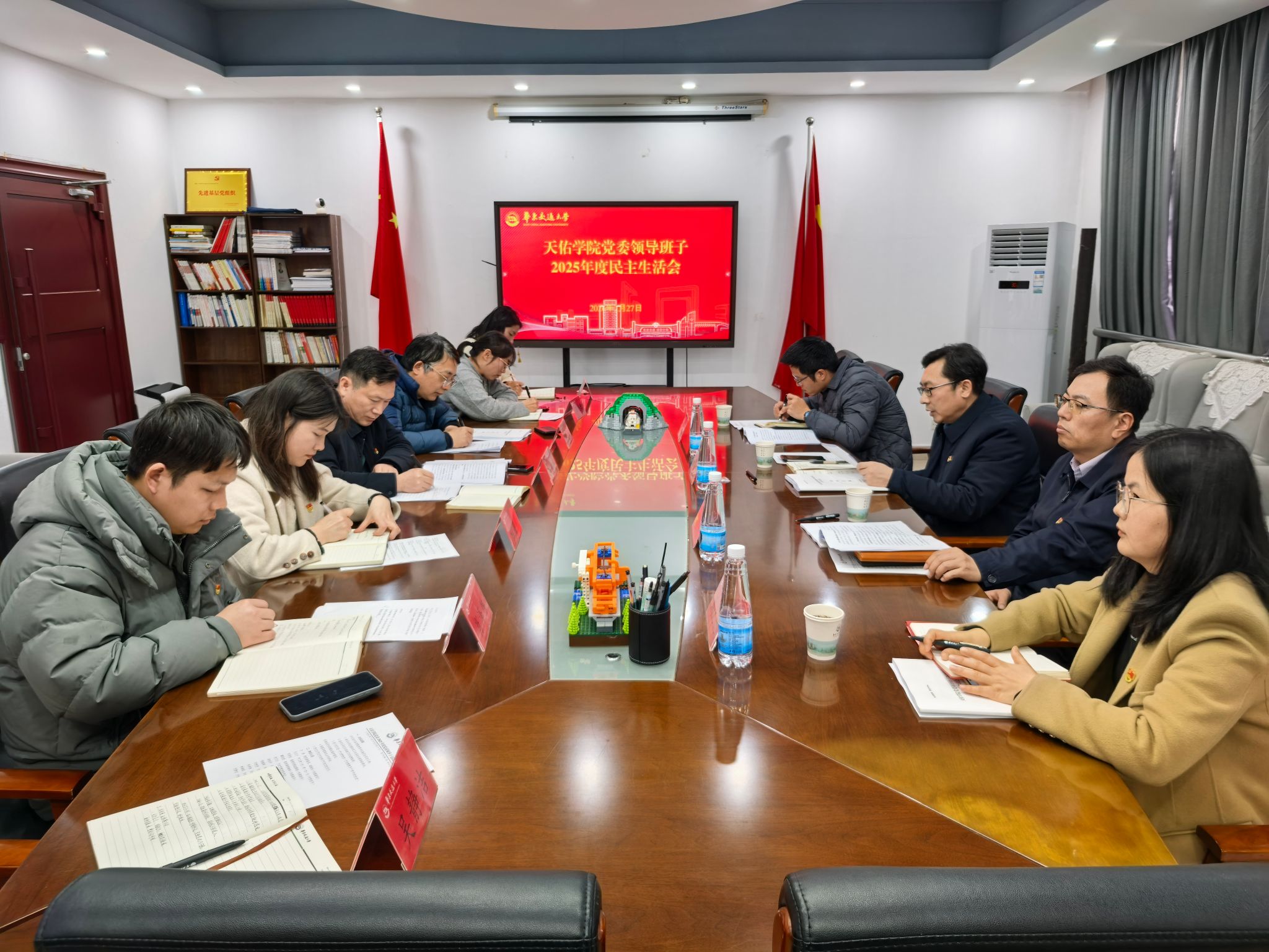 根据校党委统一部署,2月27日,学院召开2025年度院党委领导班子民主生活会。校党委委员、副校长于涛同志,学工部(处)部(处)长吴正才同志,驻校纪检监察组宋贤东同志,组织部考核科戴优优同志到会指导,会议由学院党委书记俞店生同志主持,学院党委领导班子全体成员参会,学院组织员林春莉同志、专职辅导员吴静洁同志列席会议。